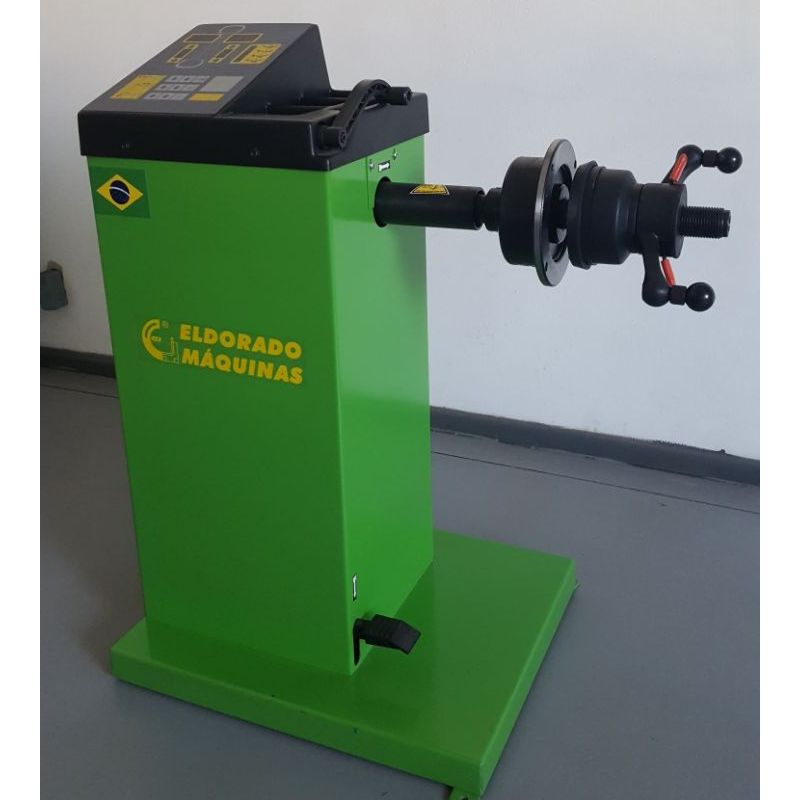 Máquina de balanceamento com sistema de acionamento manual, adequado para dispositivos de veículos leves e utilitários, aro 10 a 20 polegadas comuns ou de liga leve, rodas até 65 kg. Modelo de fabricação NACIONAL com programação de 05 posições para aplicação do contrapeso na roda, display digital que possibilita a aplicação de contrapesos no lado interno e externo da roda na mesma operação, teclado reduzido que permitindo fácil visualização e navegação e Leds luminosos que indicam a posição exata do local a ser aplicado o contrapeso.