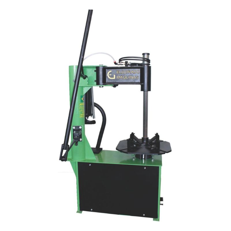 Modelo para montar e desmontar pneus de automóveis, caminhonetes e motocicletas em rodas de 12″ a 23″, com fixação externa, mesa mecânica com quatro garras e proteção em borracha para fixação da roda, sem danificá-la. Destalonador pneumático, manômetro calibrador, válvula pedal, cilindro pneumático vertical acionado por pedal para descolar o pneu da roda e braço articulado com proteção em borracha, este modelo dispõe de alavanca auxiliar para montagem de pneus “hi-perform”.